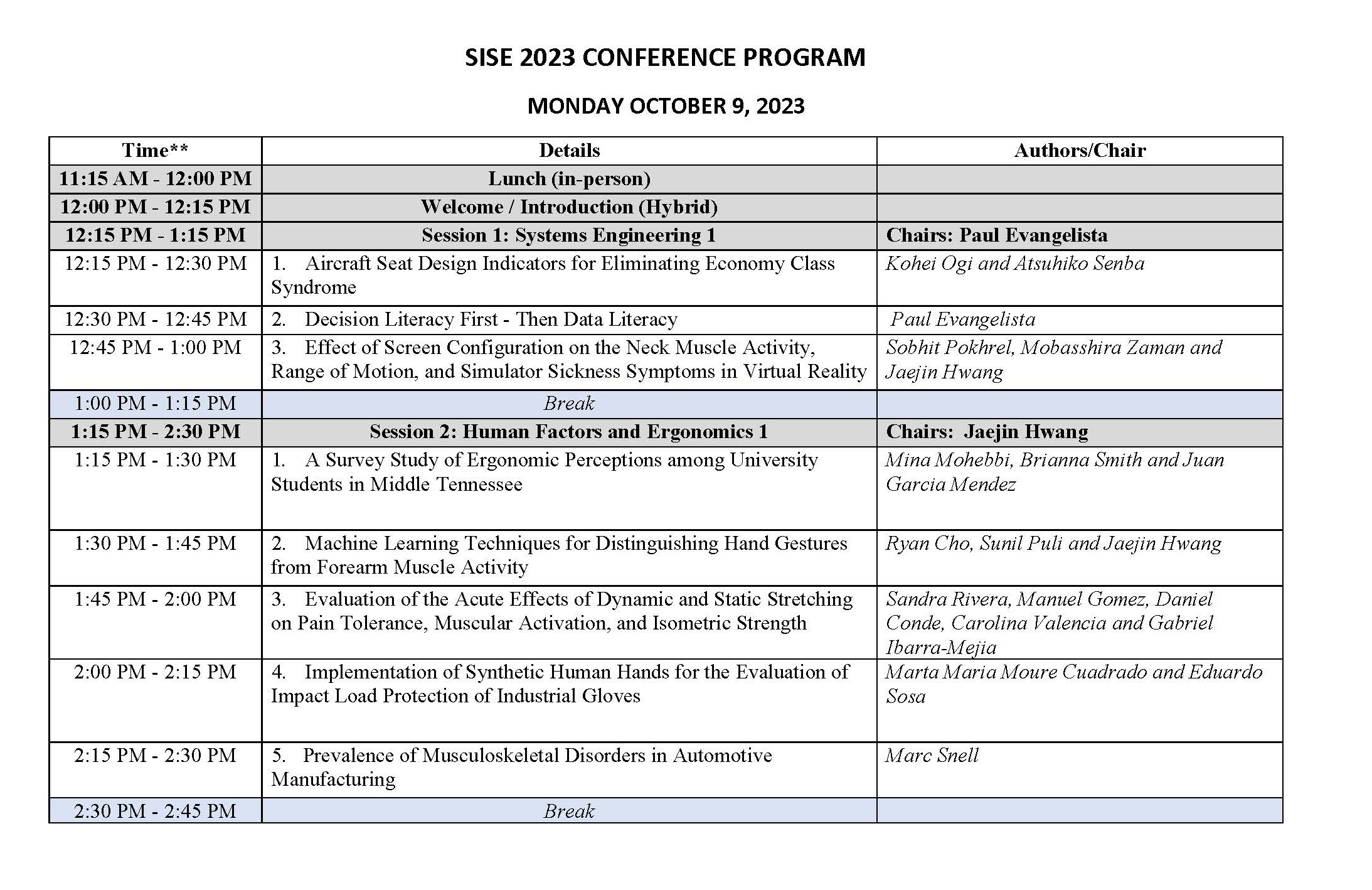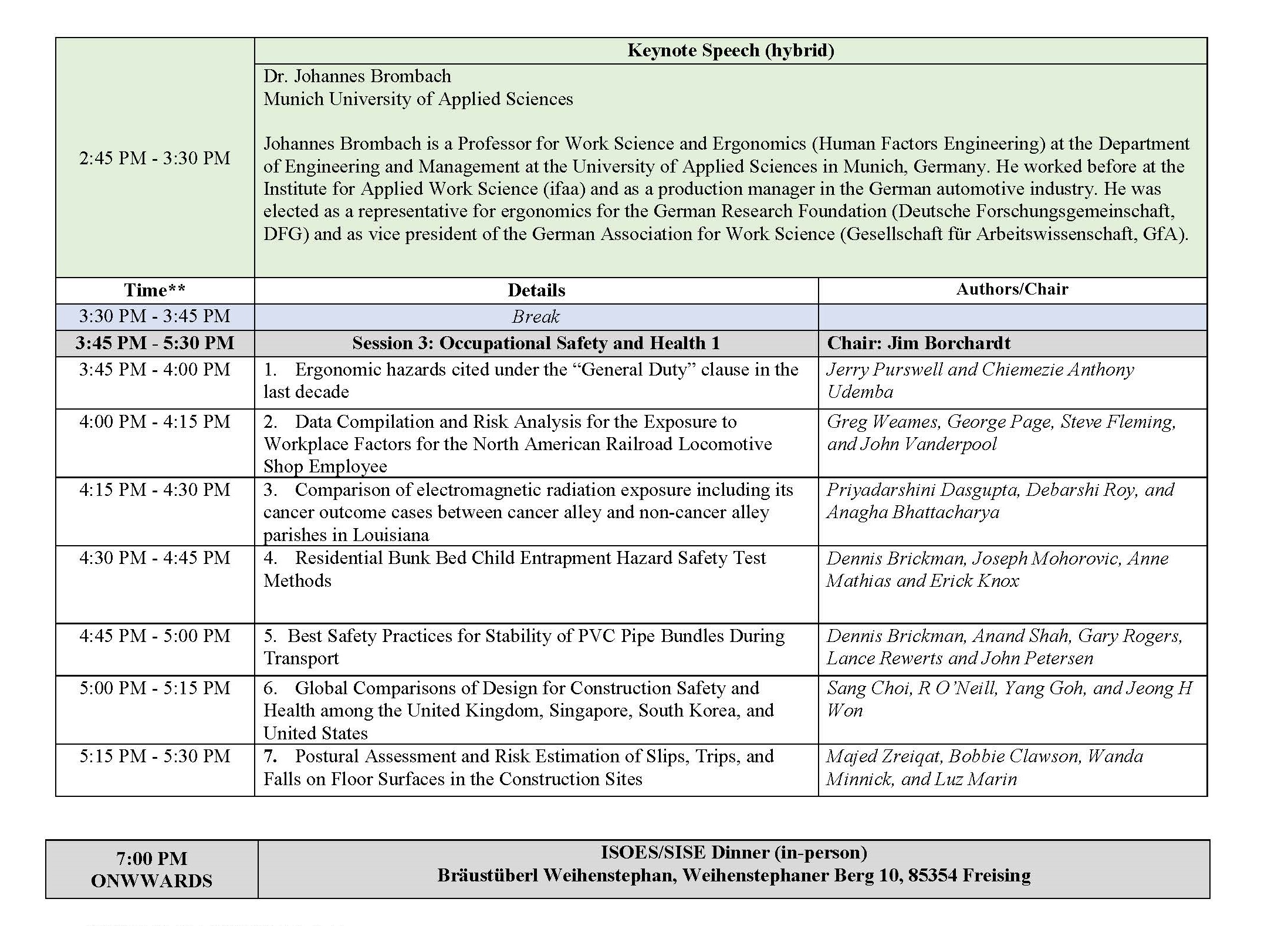 2023 ISOES/SISE CONFERENCE PROGRAM